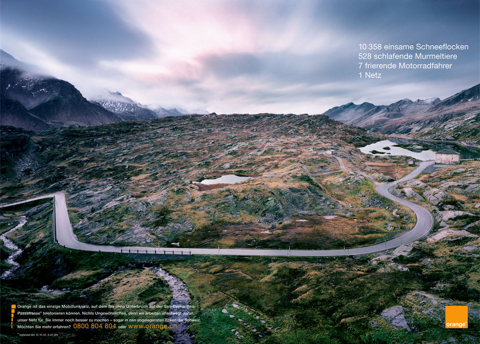 Das Netz von Orange war nie so gut wie dass der Swisscom. Aber: es gab einige wenige Orte, an denen man nur mit Orange telefonieren konnte. Und an diesen hängten wir die Netzwerkkampagne auf.